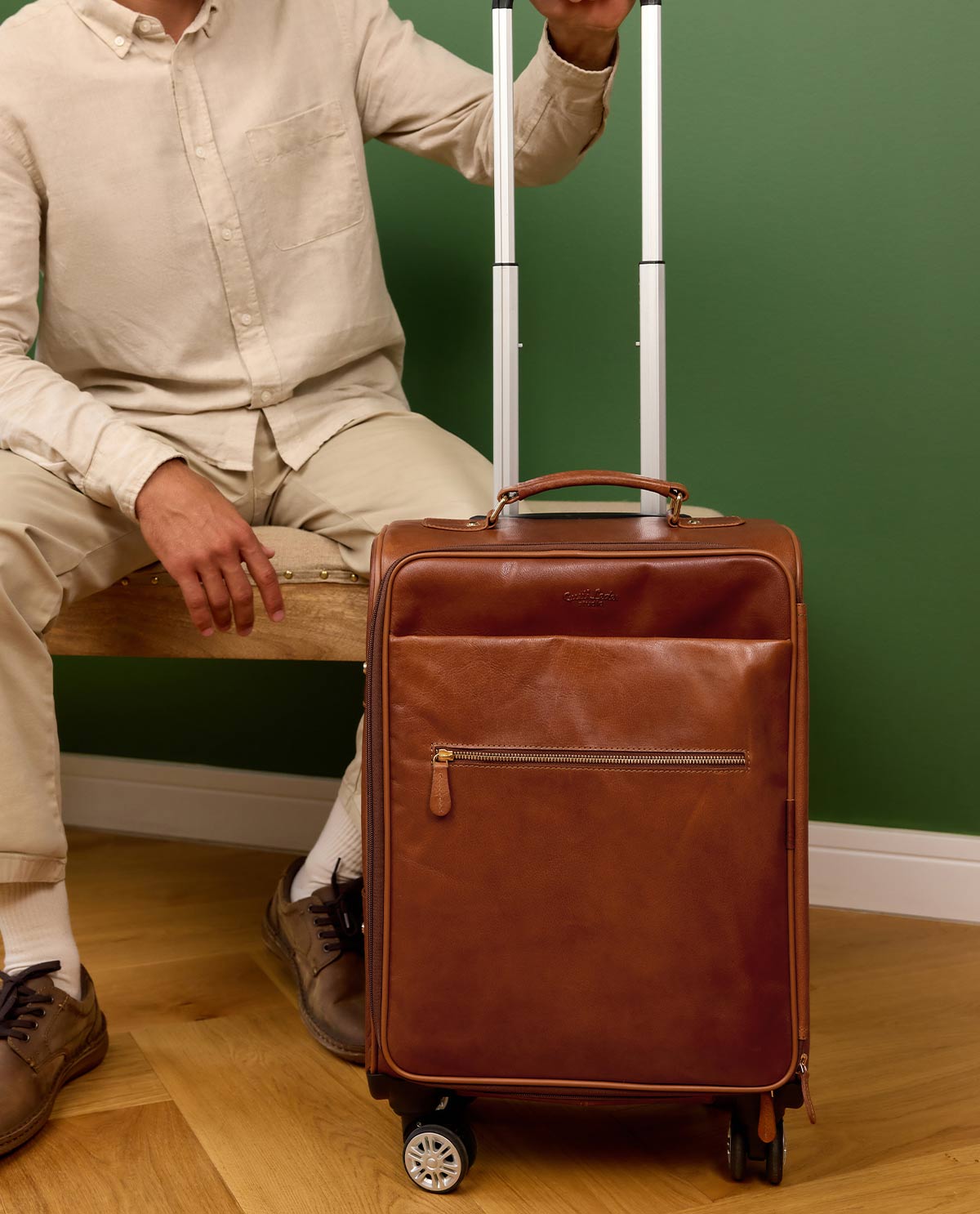 この旅行トロリーは、あなたのような目の肥えた旅行者のために作られました。ビジネス旅行、週末の小旅行、長期の休暇など、ブラウナーレザー旅行トロリーは、あなたの荷物を収納する十分なスペースを提供し、控えめでありながら贅沢なルックスを演出します。丈夫なホイールと伸縮式のハンドルは、長距離でも楽に扱えることを保証します。