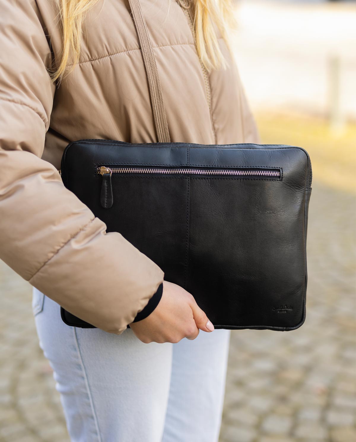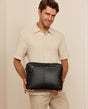 植物性タンニンでなめされた革を使用した高品質な黒のラップトップ用レザーバッグ – スタイリッシュなエレガンスと実用的な機能性が融合