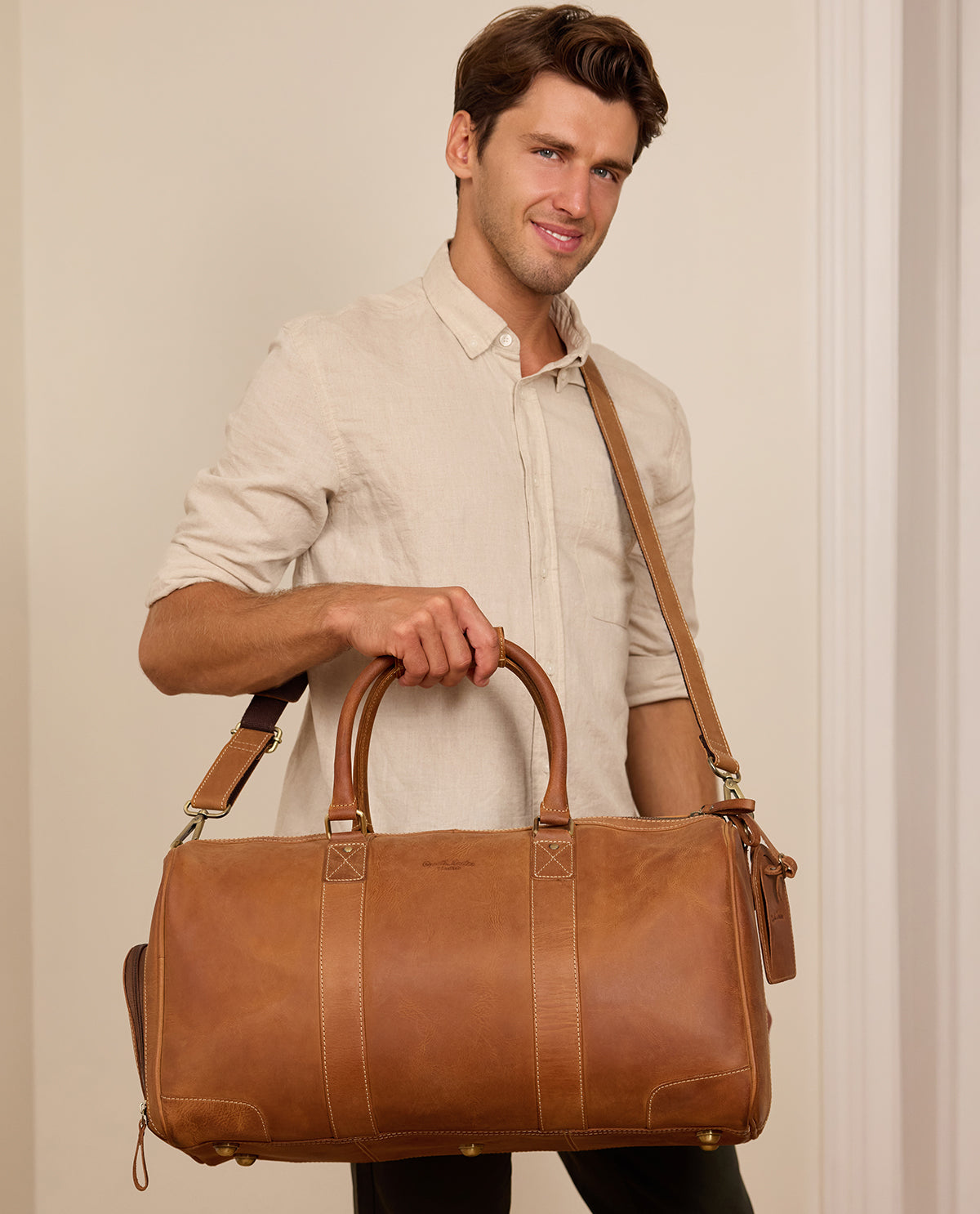 週末の小旅行にもビジネス旅行にも、この旅行バッグはさまざまな場面で活躍します。高品質なブラウンレザーは、バッグに贅沢感を与えるとともに、どんな個人的なスタイルにもマッチします。品質とエレガンスを選ぶなら、このバッグは間違いなしです。