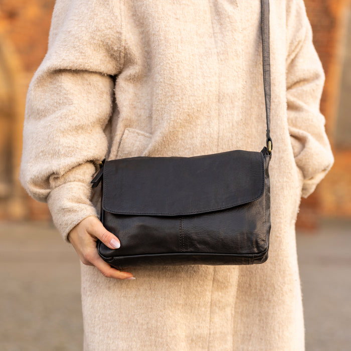 夜の集まりに行くなら、黒のレザーハンドバッグ「Zoey」を持って行きましょう。ヴィンテージスタイルのバッグは、あなたのルックにエレガントなタッチを加えます。「Zoey」は、メインコンパートメントに追加のポケットと必需品を収納するための外部ポケットを備えたファッショナブルな女性用ハンドバッグです。