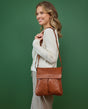 エレガントなブラウンの前ポケット付きショルダーバッグ